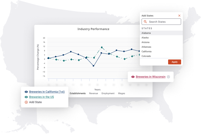 Detailed State Industry Reports examine local data and offer projections for revenue, employment and business growth across states. Use this hyper-relevant geographic data to: